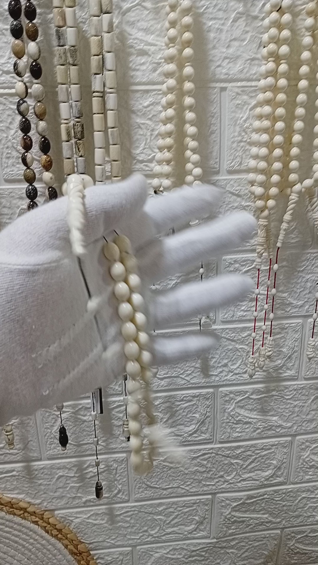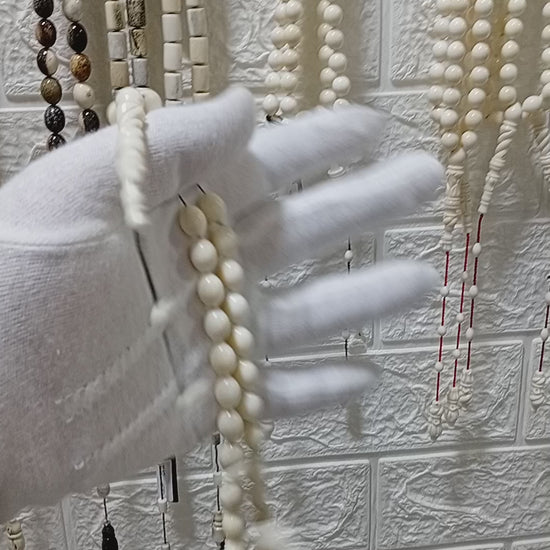 (سيد قشطة) مسباح منحوت يدويا من عاج فرس النهر الطبيعي بعدد 33 خرزة ووزن 26 غرام مقاس 8*11 ملي مزين بطقم تمليكة فاخر يعكس براعة الصانع